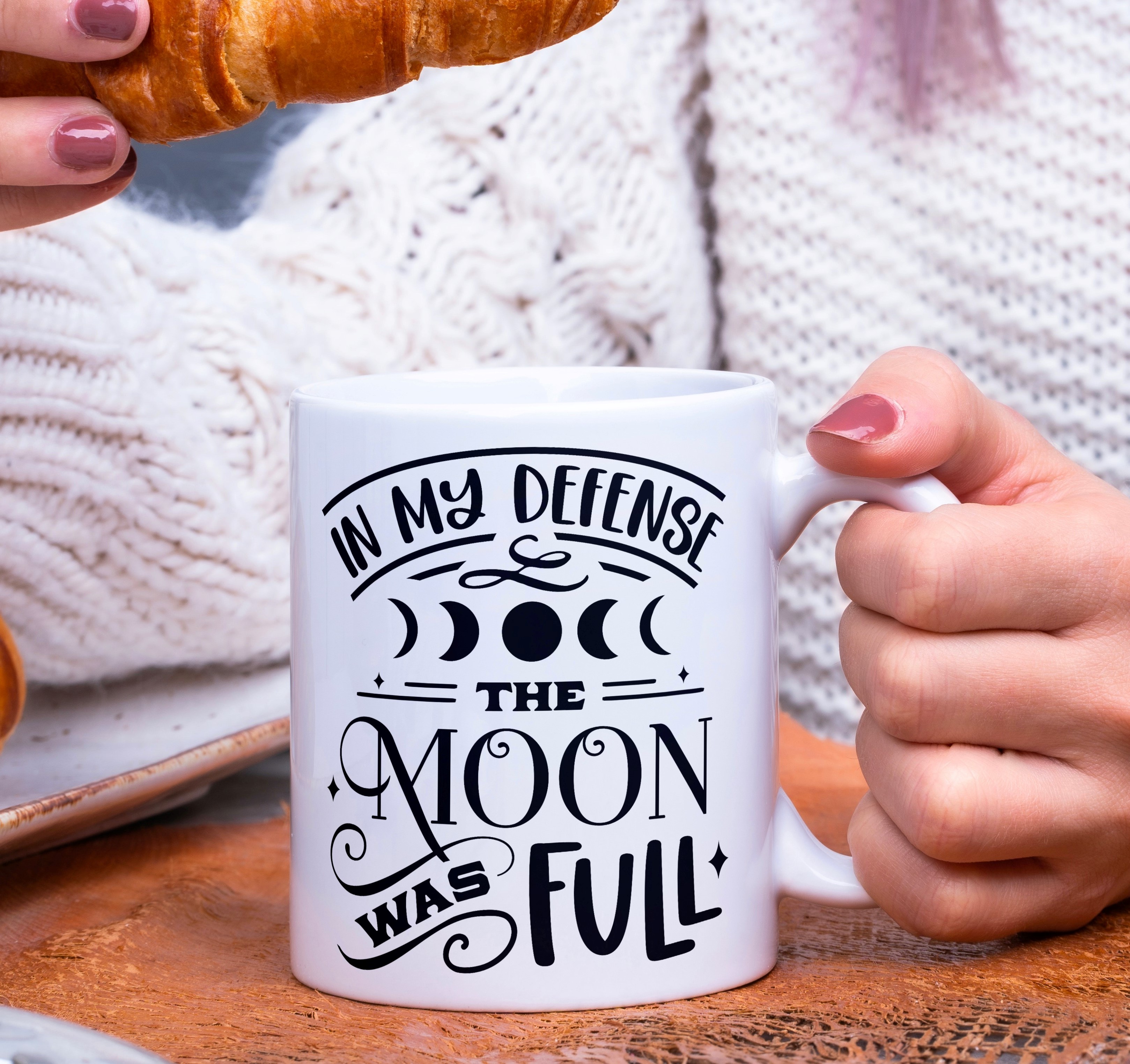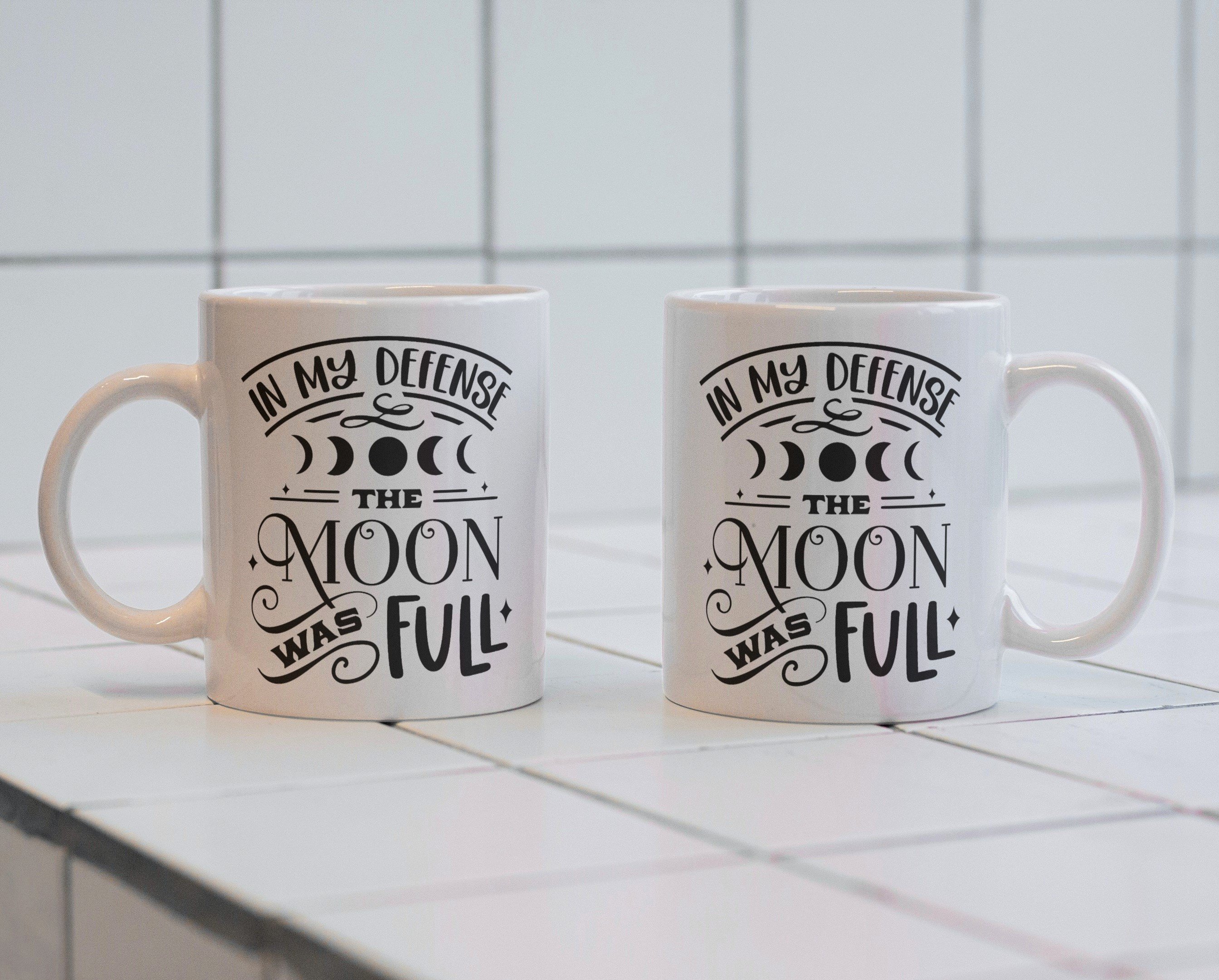 Introducing our hilarious and relatable coffee mug, perfect for those who experience a change of mood when the moon is full! This 11oz mug features a delightful design accompanied by the words "In my defense, the moon was full." It's a great conversation starter and a fantastic gift option for anyone with a sense of humour.